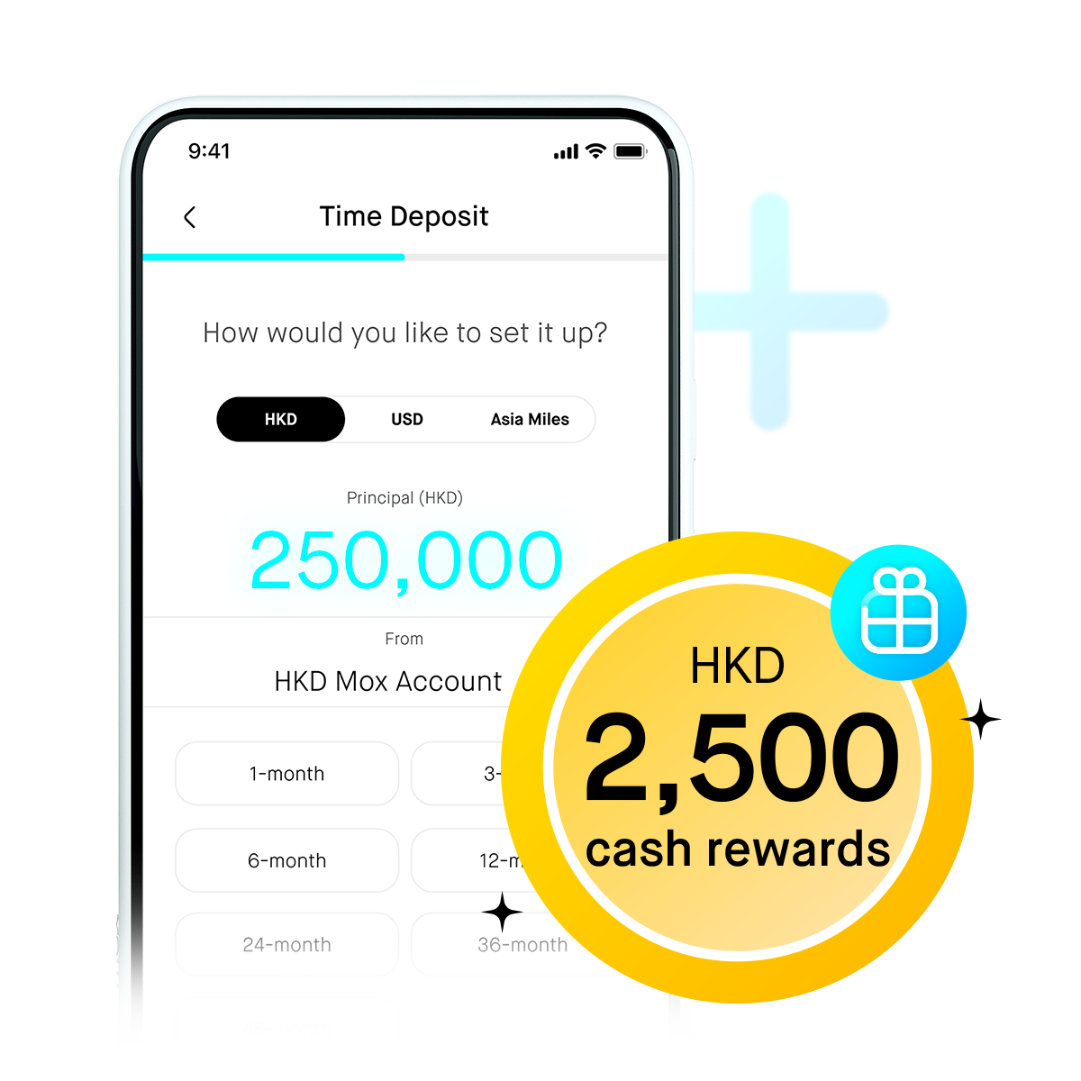 From now until 24 April 2026, simply open a Mox Account using the invitation code 'MOXDEPO'. Complete the account opening process within the following 15 days and deposit within the first 7 days of account opening and keep HKD250,000 or more in your HKD Time Deposit Account til the end of the Hold Fund Period to earn HKD2,500 cash rewards. Join us now¹!