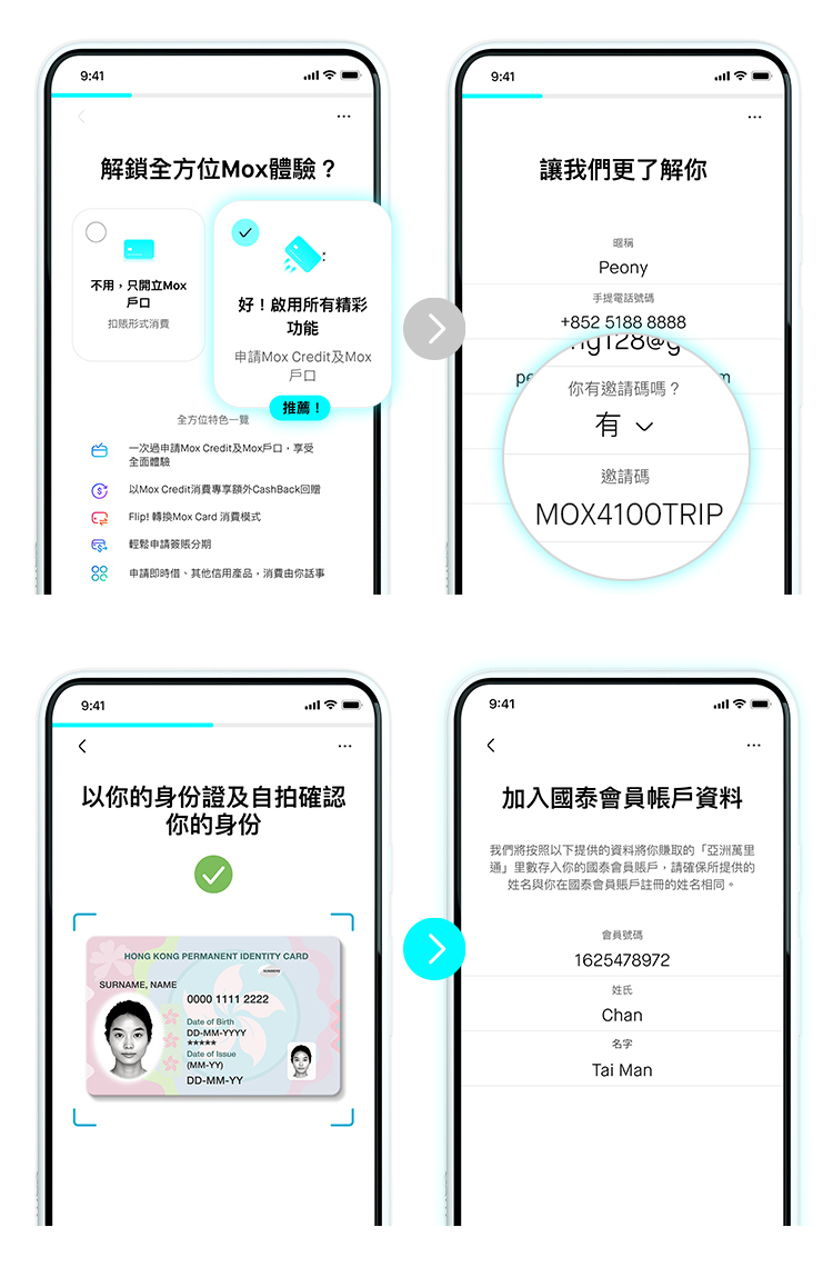 即日起至2025年2月28日,新客戶憑邀請碼「MOX4100TRIP」開戶,在Mox 信用卡¹獲批核首60日內以Mox 信用卡累積滿HKD15,000合資格消費,即享15,000「亞洲萬里通」里數。