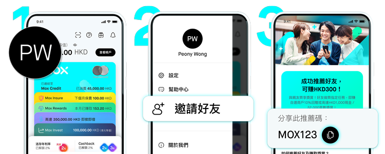 至於你的推薦人獎賞——Mox繼續送上 HKD300 作為每個成功推薦的回饋,無複雜任務,簡單直接,而且推薦人數無上限,讓你與好友齊齊友福同享🎉🎉🎉